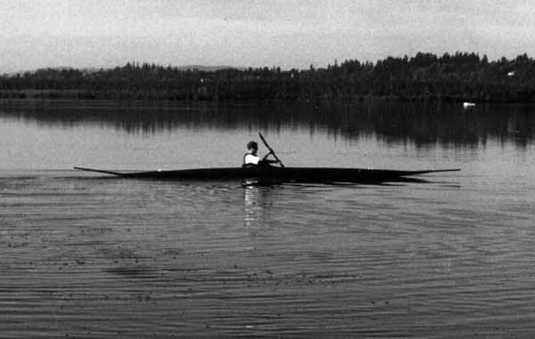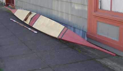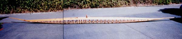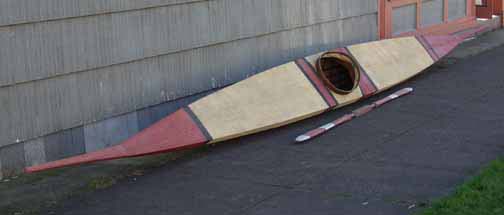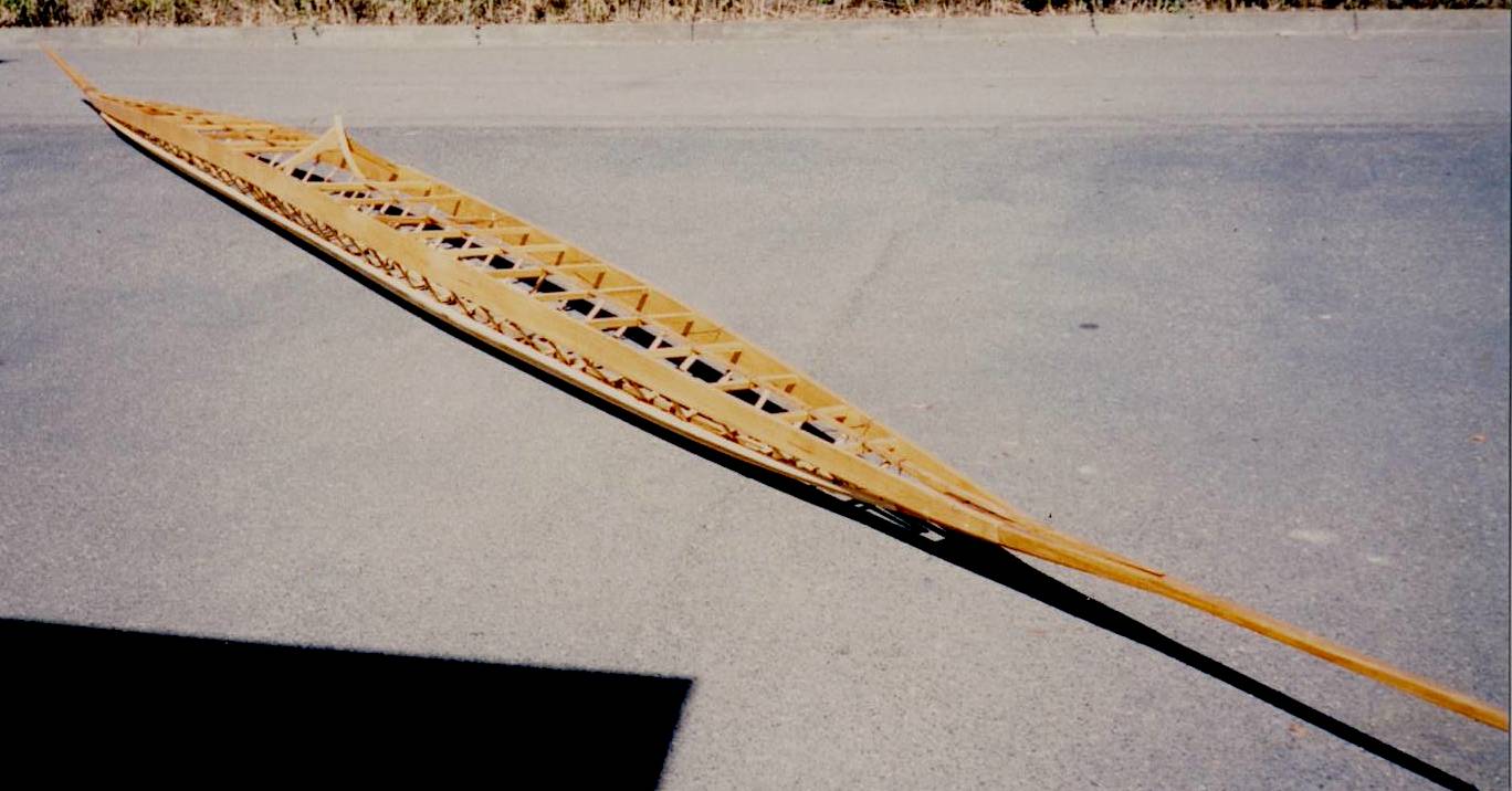 This kayak has the distinction of having been the longest traditional kayak in a museum collection-- at least as far as I can determine. The length is 28'2-1/2", the width is 18-1/2". My replica was built from Eugene Arima's drawing of the kayak; this drawing has been published in SeaKayaker Magazine (Fall, 1991). This kayak was collected by Captain Comer in the 1890s. The original was in the American Museum of Natural History, New York, New York-- the museum discarded the kayak in the 1980s.