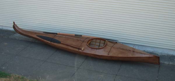 measures 14'6-1/4" long and is 27-11/16" wide. This replica was built in July, 2006. The lines of this kayak are published in "Kayaks of Alaska."