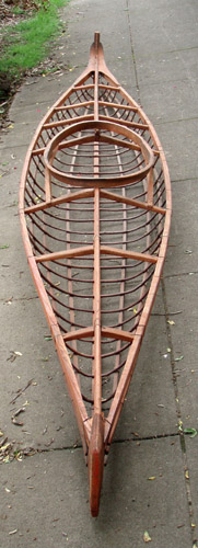 The original is in the Danish National Museum's collections (Ib.160), and its lines have been published in David Zimmerly's "Qayaq: The Kayaks of Alaska and Siberia" (1986, 2000:29, fig. 38.) The lines depicted in Qayaq are of the damaged original; my replica is 'restored' to form, i.e., the sheerline has been straightened out. This kayak and restored lines are also featured in "Kayaks of Alaska." The kayak measures 14'3" by 26."