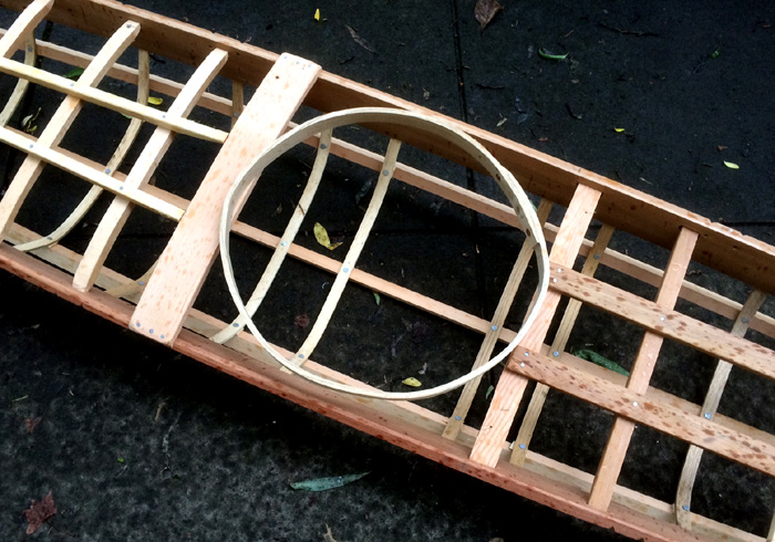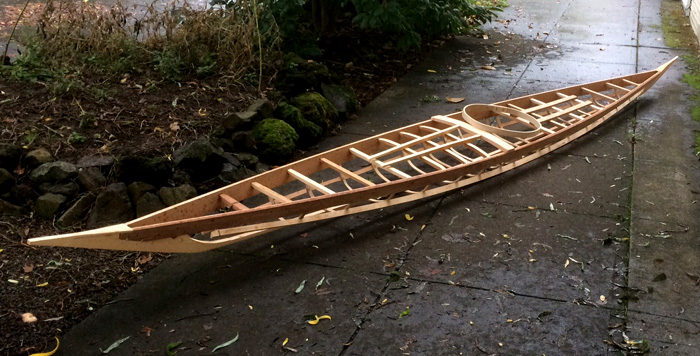 Frame of the 1959 Illorsuit kayak: 16'6-3/4" long by 20-15/16" wide. (Completed 10-24-2014.)