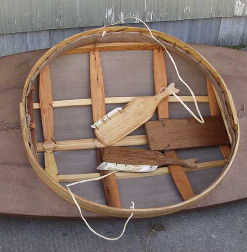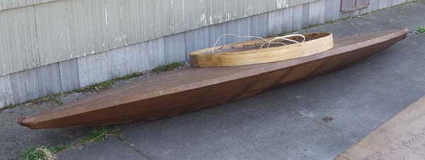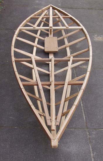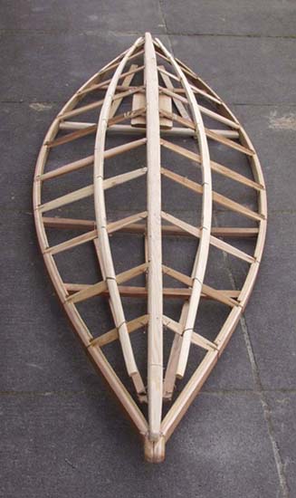 The ribs of this kayak consist of straight planks let into the lower edge of the gunwales,