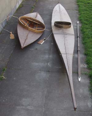 On the right is the replica of the 1830s Baffin Island kayak; Its paddle is 27"